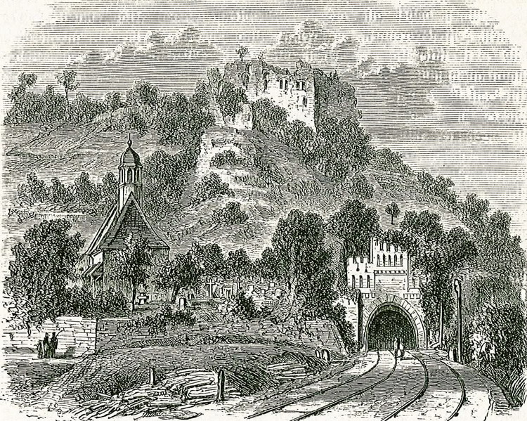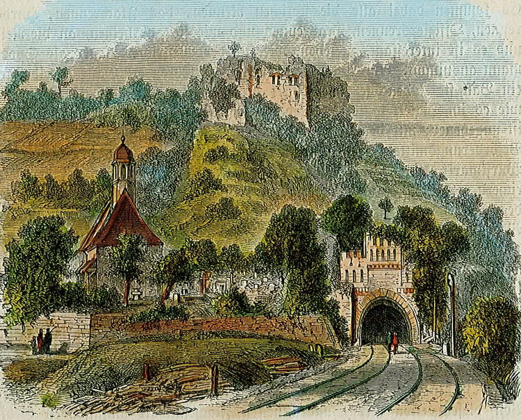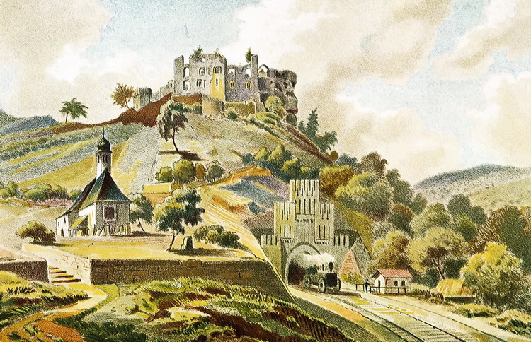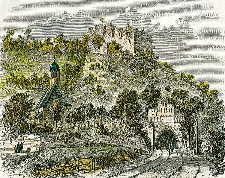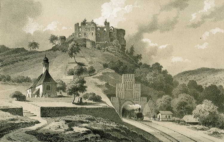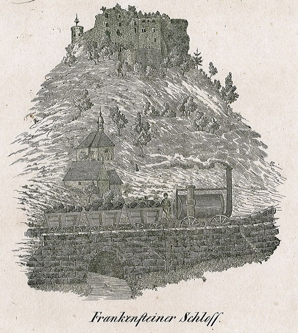Frankenstein mit der von 1844 bis 1849 erbauten Eisenbahn