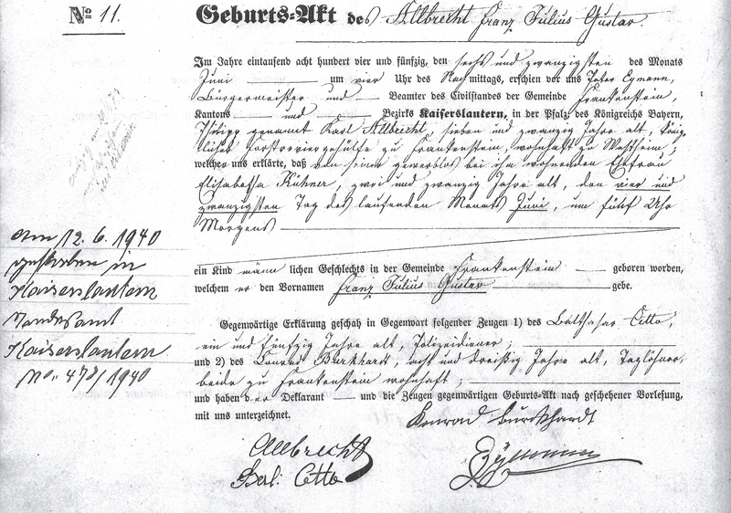 • Gustav Albrecht, geb. 24.06.21854 in Frankenstein , Pfalz