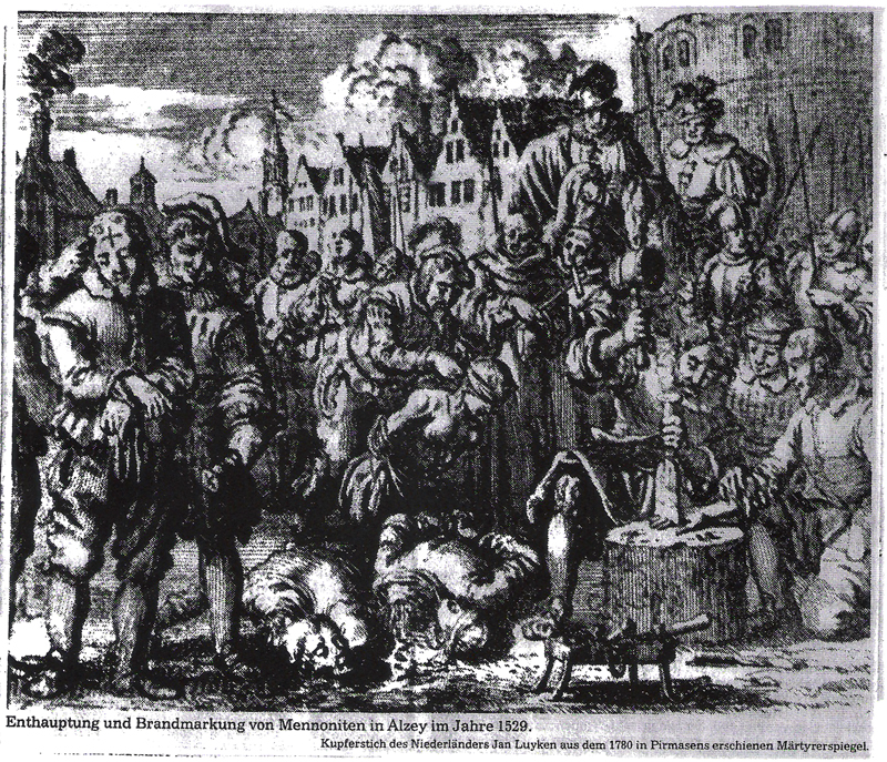 Mit Bewunderung blicken wir die Jahrhunderte zurück auf die täuferische Glaubensgemeinschaft, die ihrer religiösen Überzeugung willen unsägliches Leid getragen hatte. Eine anschauliche Beschreibung der Grausamkeiten liefert Jan Luykens in seinem Werk „ Der Märtyrerspiegel“. Bemerkenswert ist der Mut mit welchem auch teilweise die Wiedertäuferinnen ihren Peinigern entgegentraten. Diese Frauen standen in dieser Hinsicht ihren männlichen Glaubensbrüdern in nichts nach. Deren erlittenen Torturen wurden innerhalb der Täufergemeinden aufgenommen und in Versform, als Martergesänge, weitergetragen. Ein erschütterndes Beispiel dazu liefert die niederländische Täuferin, Elisabeth Dierks, deren Qualen, in Reimen gefasst, bis heute zur Idenditätsfindung der Mennoniten, beitragen.