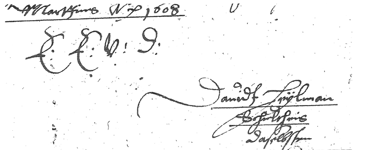 Unterschrift von David Heylmann aus dem Jahr 1608, LA-Sp,A2, 981/3, fol.4